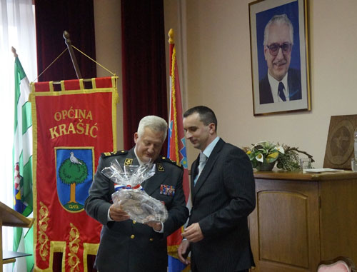 Na ovoj svečanoj sjednici Općina Krašić je uručila Povelja počasnog građanina Općine Krašić generalu Mladenu Markaću.